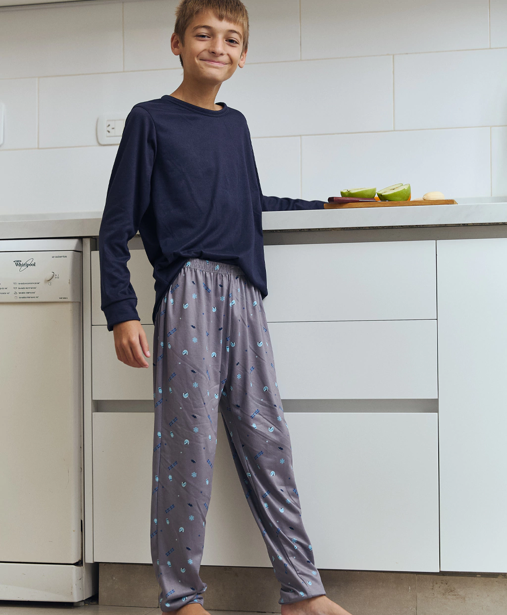 Conjunto de remera manga larga con bolsillo y pantalon con bolsillos y elástico en cintura.