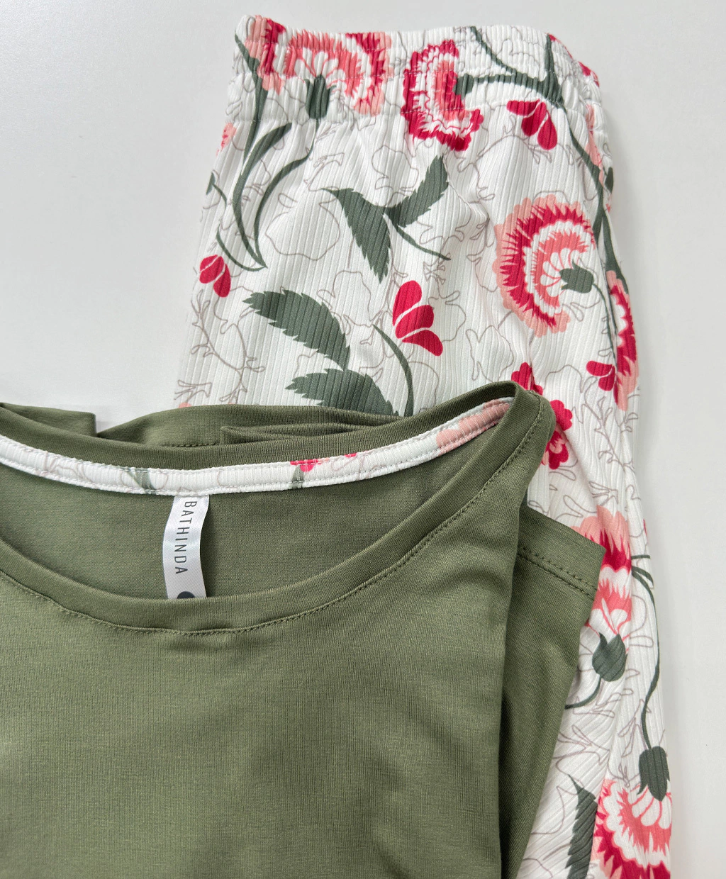 Conjunto de punto de remera y pantalón con cintura elastizada.