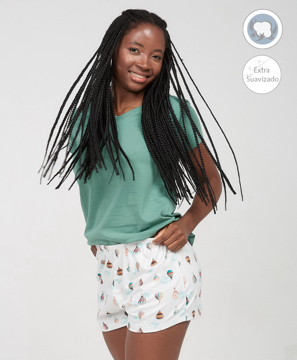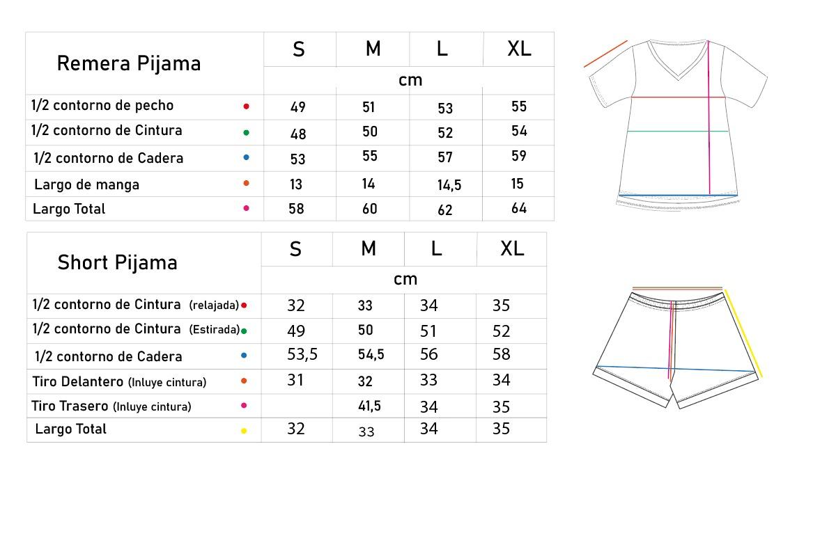 Pijama en Conjunto, Con remera en escote v y short elastizado.COMPOSICIÓN: